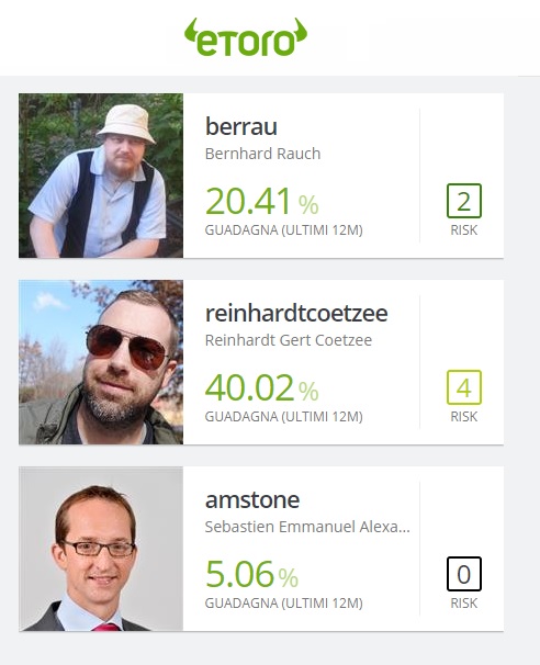 Plataformas como a eToro , líder mundial em negociação social, permitem que investidores não profissionais entrem em contato com os mais experientes e troquem informações. Com o eToro, de fato, você pode acessar as informações dos profissionais do setor: eles alcançam bons resultados, e você também, inspirados em suas estratégias de investimento.